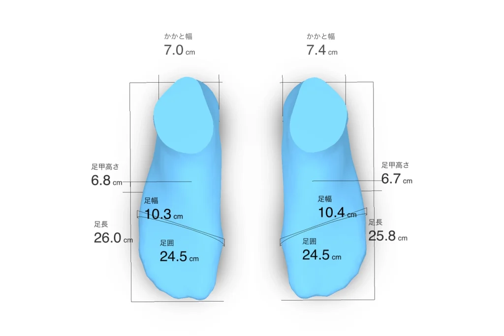 例:あなたの足長25.8cm → 私より -0.2cm。 - チャートで補正